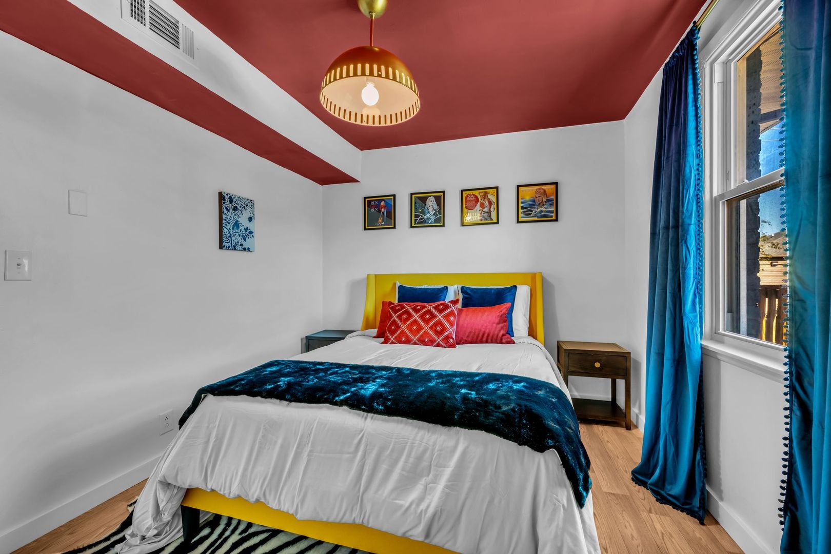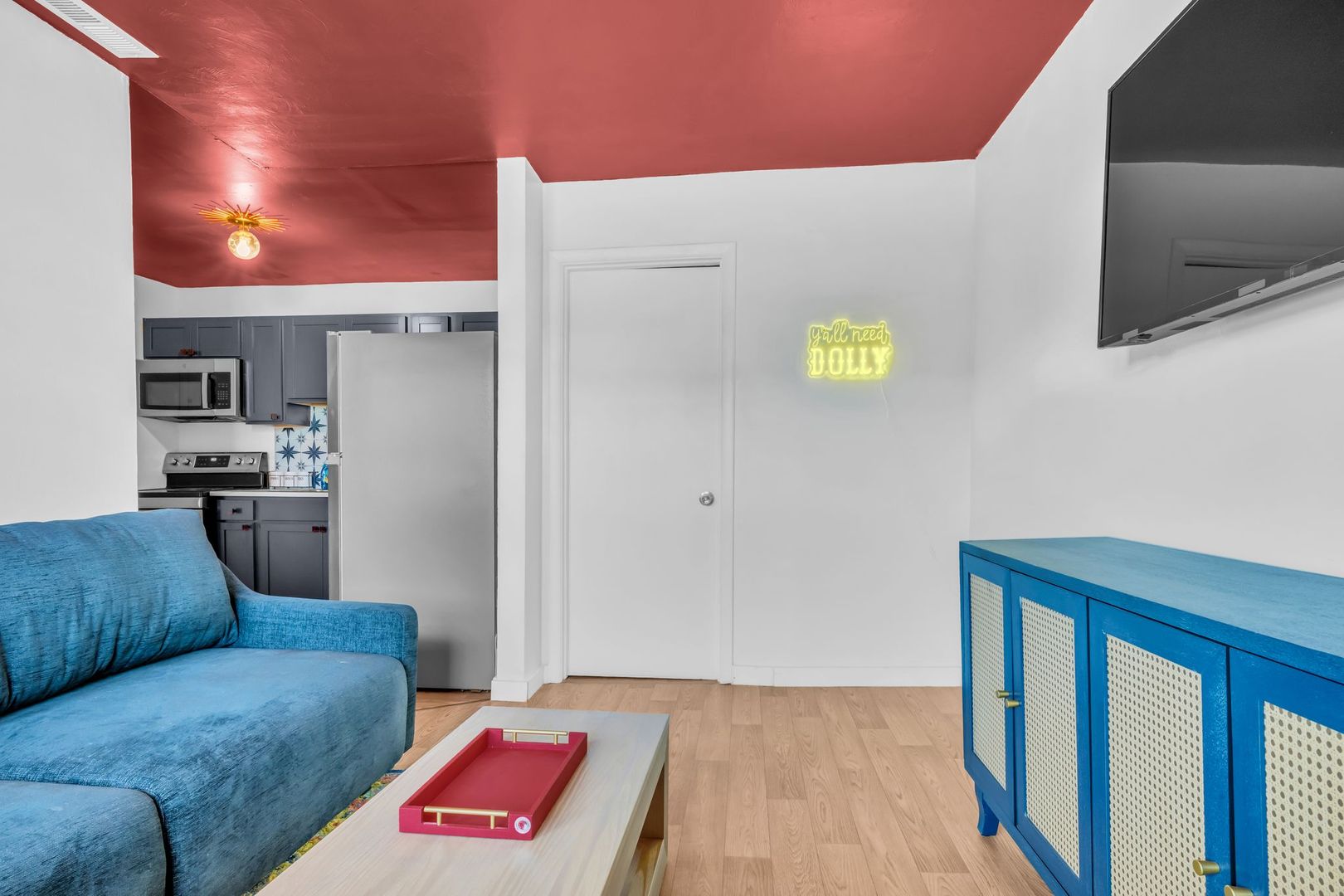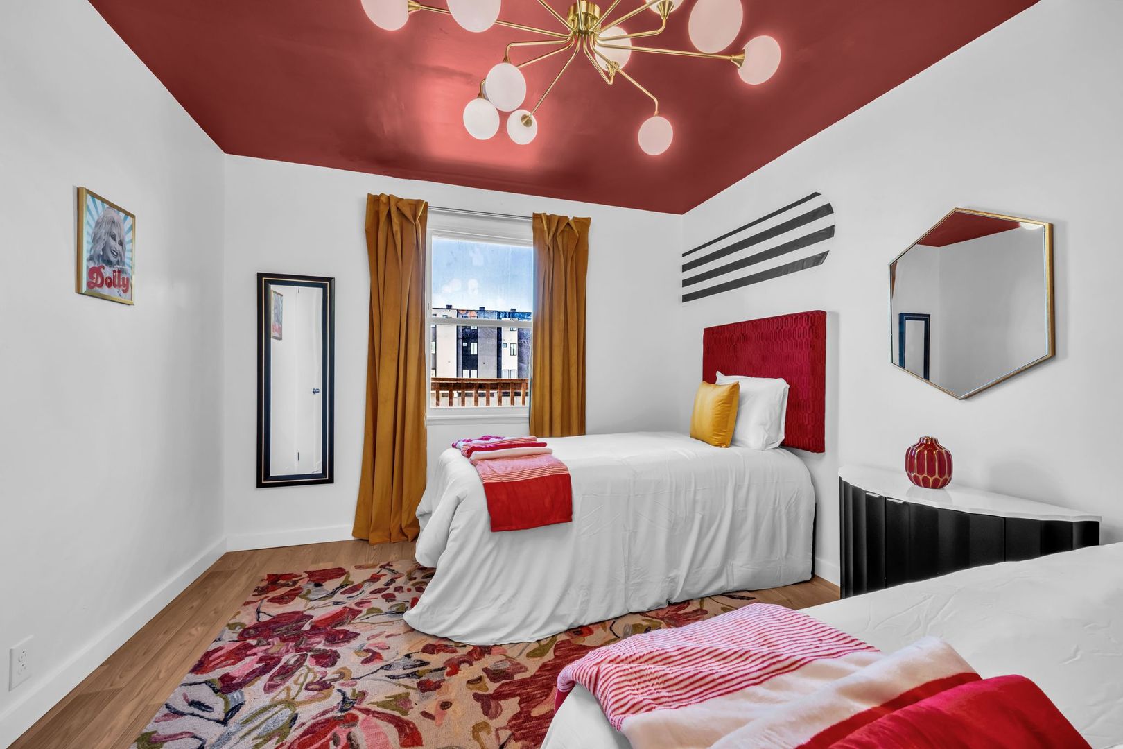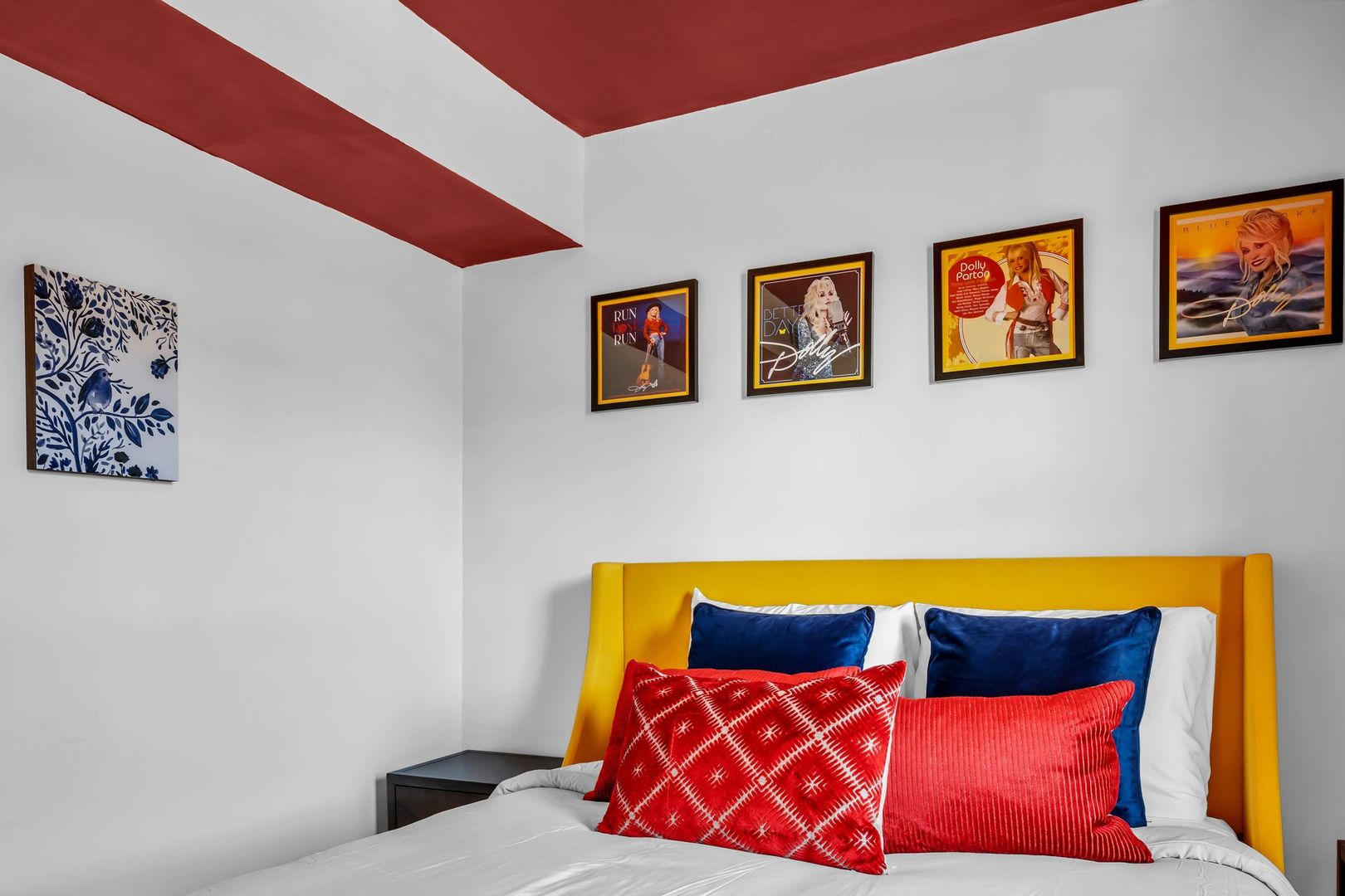 Bright, welcoming, and full of Southern soul — The Dolly Parton Suite is as charming as its namesake. This spacious two-bedroom apartment features one room with a queen bed and another with two twin beds, plus a pull-out couch in the living room for extra guests. With a mix of playful color and cozy comfort, this suite brings a little sparkle and warmth to every stay. Perfect for families, friends, or anyone looking for a Nashville stay that feels like home.